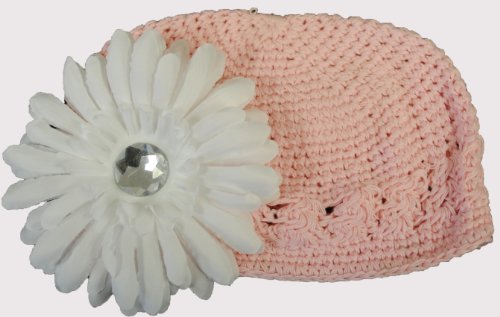 Girls Pink Crochet Hat / Beanie for size 2T-10 with 4" White Flower Clip/Bow Overview